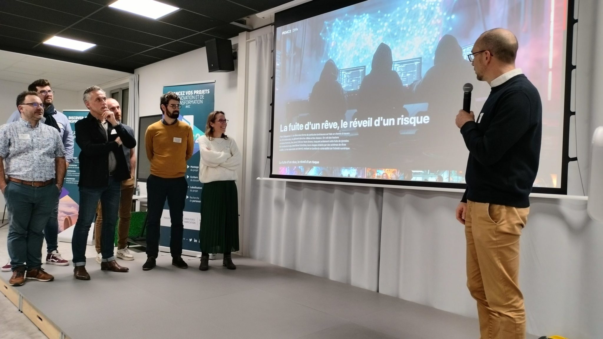 Après un mot d’accueil de Laurent Aubertin, Directeur du Développement du Pôle EMC2 et de Florent Orsoni, Directeur prospective et professionnalisation à L’École de design Nantes Atlantique, les adhérents du Pôle se sont transformés en réalisateurs.
