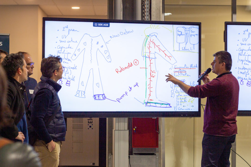 Cette année, le Pôle EMC2 s’est tourné vers son équipe pour concevoir l’événement de A à Z. Laurent AUBERTIN, Murielle BERTRAND, Océane LE BOT et Julie THEAM-SIKY constituaient « l’équipe animation » pour cette édition 2023. Ils ont imaginé des scénarios catastrophes provoquant des crises économiques, écologiques et politiques. Les participants étaient mis au défi de les résoudre en s’inspirant du projet européen RESERVIST (réadapter les lignes de production en cas de crise pour répondre à un besoin spécifique).