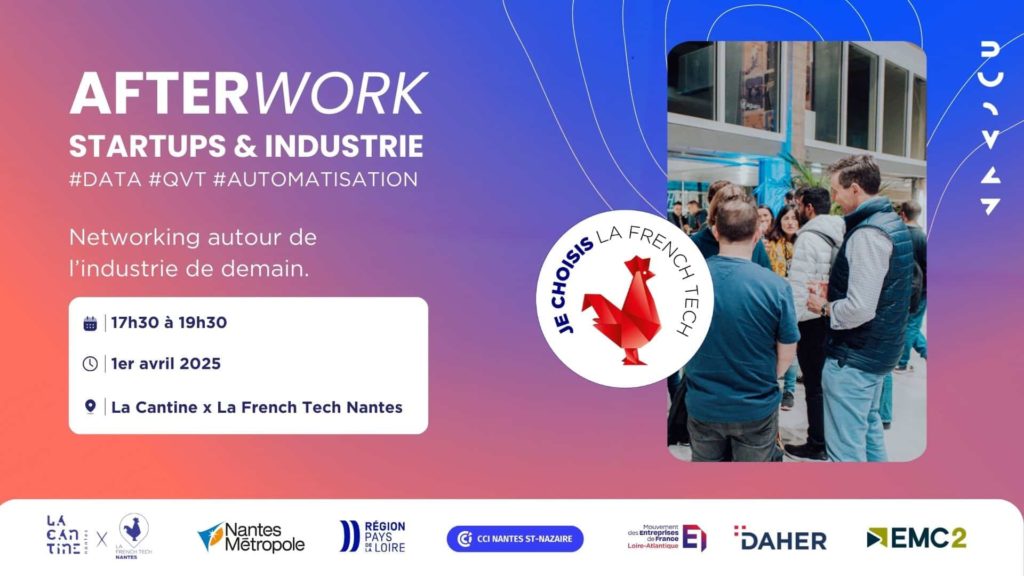 En clôture de la journée dédiée à l’AAP Industrie & Excellence opérationnelle en partenariat avec Daher, La Cantine organise un afterwork business « Je Choisis la French Tech » ouvert aux startups et industriels. L’objectif ? Échanger sur vos problématiques et rencontrer des startups qui apportent des solutions autour de la data, l’automatisation des tâches ou encore la QVT.