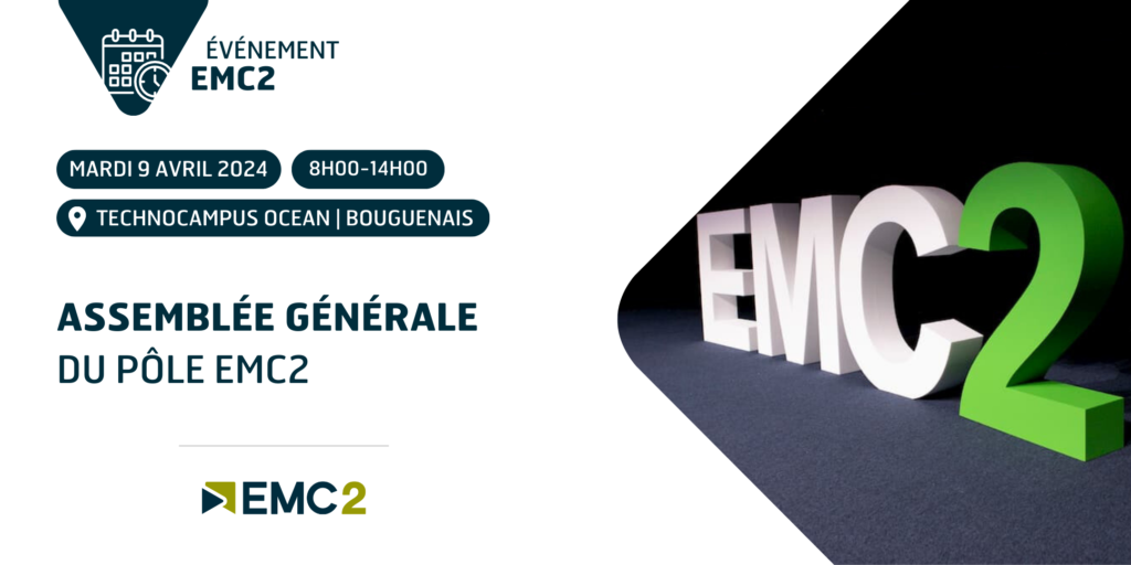 L’Assemblée Générale du Pôle EMC2 se tiendra le mardi 9 avril 2024 à partir de 8h00 au Technocampus Océan, à Bouguenais. Elle sera suivie d’un cocktail déjeunatoire.