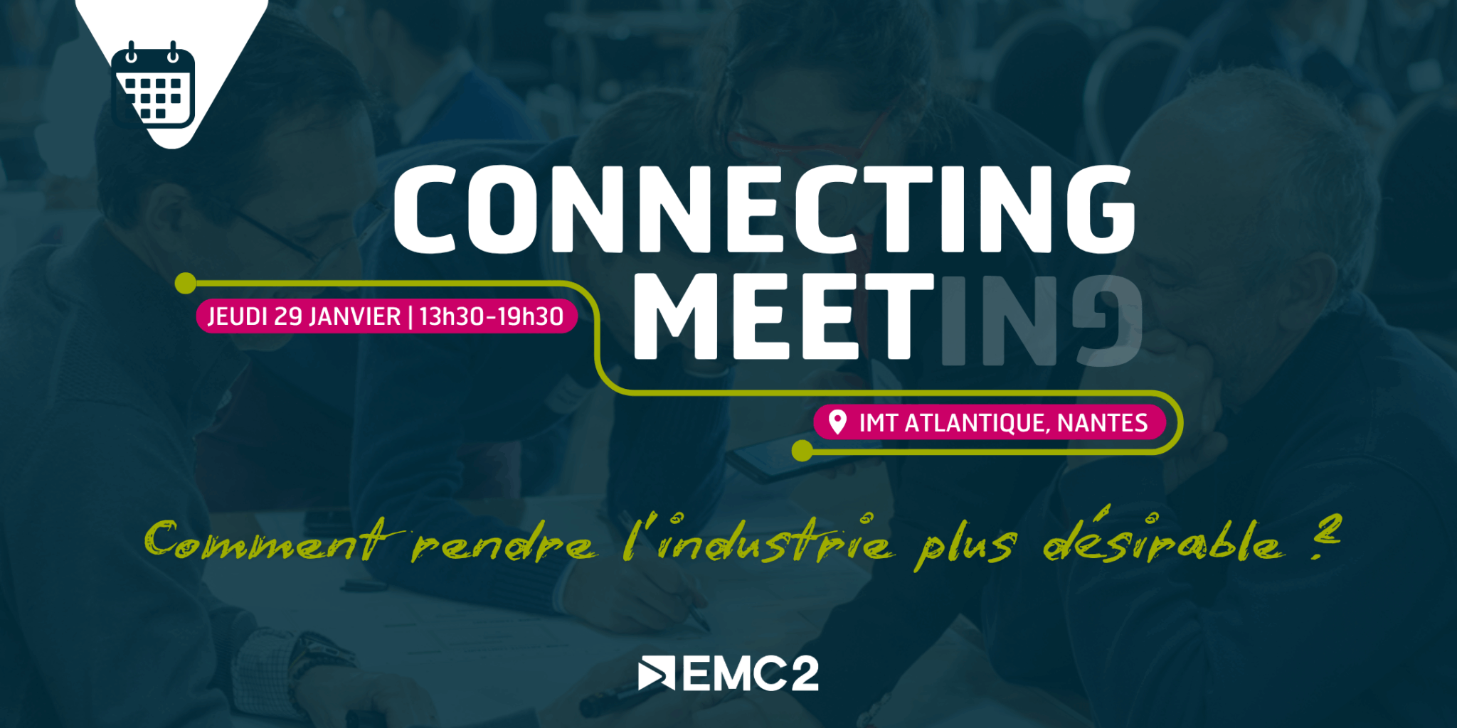 Connecting Meeting, c’est le rendez-vous annuel des adhérents du Pôle EMC2. Ce temps fort met l’accent sur ce qui fait la richesse de notre communauté : les rencontres, les échanges et les synergies entre tous les acteurs qui façonnent l’industrie de demain. L’édition 2026 se déroulera le jeudi 29 janvier de 13h30 à 19h30, à l’IMT Atlantique (Nantes). Inscrivez-vous dès maintenant pour cet événement qui rassemble chaque année une centaine de participants !