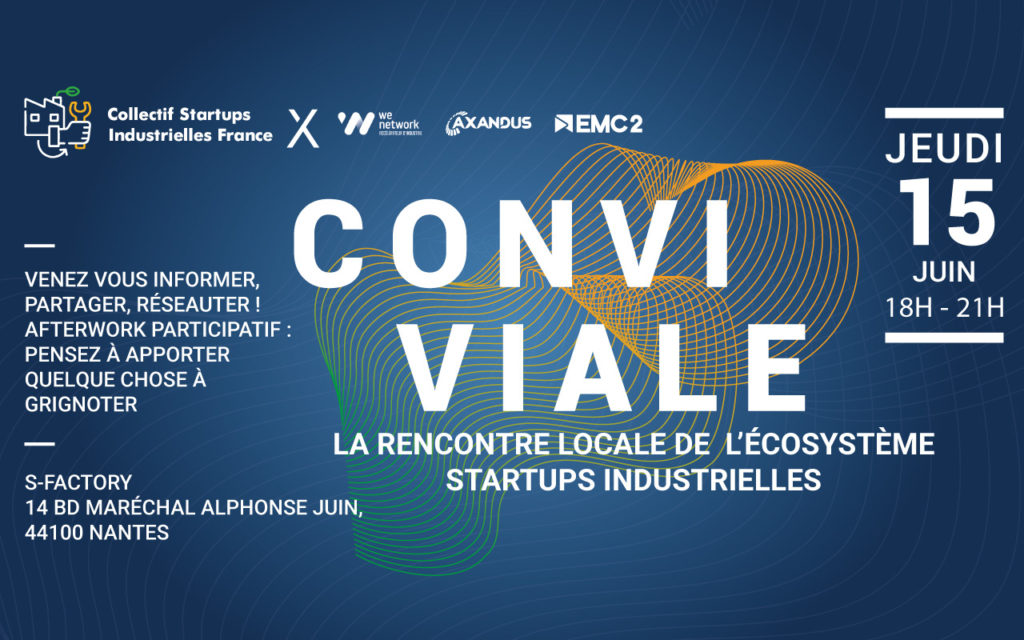 Startupers, à vos agendas ! Le Collectif Startups Industrielles France vous donne rendez-vous le jeudi 15 juin 2023 à l’espace de coworking industriel S-Factory pour participer à la seconde Conviviale des Pays de la Loire. Un événement organisé par EMC2, Axandus et We Network.