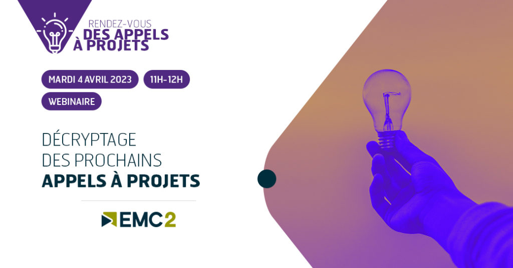 EMC2 vous accompagne dans le dépôt de vos projets. Le « RDV des appels à projets » décrypte avec vous les prochains appels à projets.
