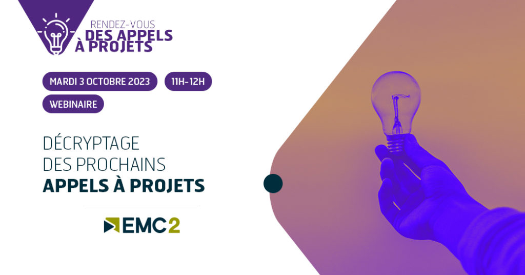EMC2 vous accompagne dans le dépôt de vos projets. Le « RDV des appels à projets » décrypte avec vous les prochains appels à projets.