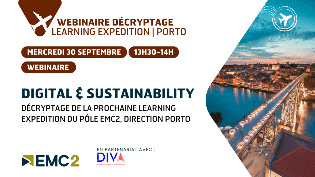 Le Pôle EMC2 vous propose une semaine immersive de Learning Expedition au croisement du digital et du développement durable, du 17 au 21 novembre 2025 à Porto. Vous êtes intéressé mais souhaitez en savoir plus ? Venez découvrir tout ce qui se cache derrière cette expédition exceptionnelle au cœur de l’industrie portuense lors de ce webinaire de 30 minutes !