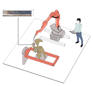 - Process level: high WAAM productivity will be achieved using multiple wire deposition systems. The productivity will increase from typically 2 kg/h to 5 kg/h, which can double when a dual robot configuration is used. In-line contactless inspection will ensure first time right quality and facilitate qualification.