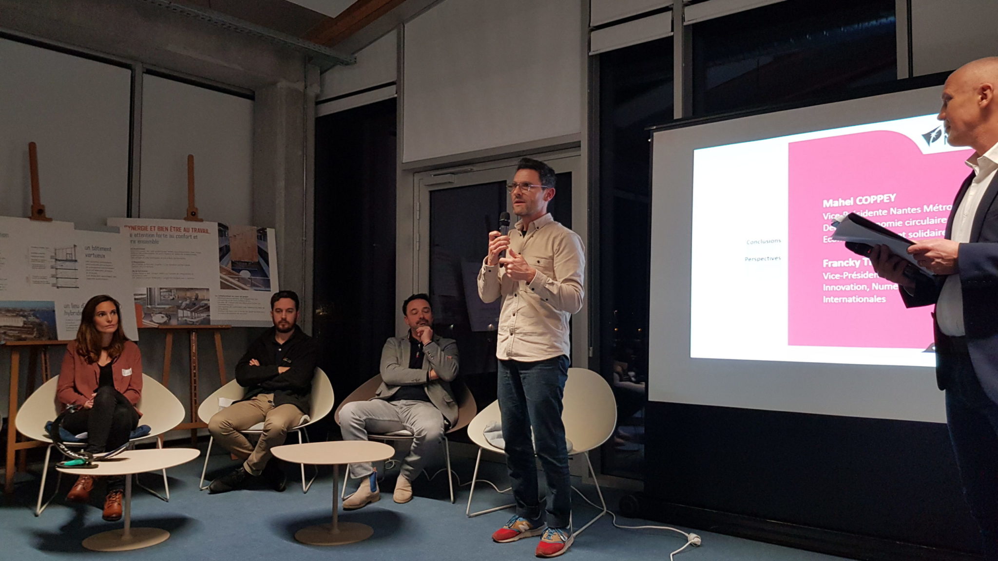 L’événement fut l’occasion de présenter les conclusions de l’étude d’opportunité, qui a été confiée au Pôle EMC2. C’est le projet de bateau de course au large du skipper nantais Armel Tripon qui a inspiré cette démarche. Le projet du navigateur pour participer au Vendée Globe 2024 : soucieux de performance mais également des enjeux écologiques, construire un bateau de compétition à partir de fibres de carbone déclassées par l’usine nantaise d’Airbus Atlantic, matériau utilisé en grande quantité par le fleuron industriel.