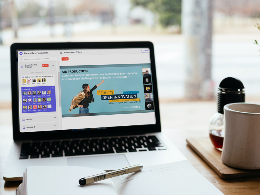 Grâce à la plateforme PlaceMeet, le rendez-vous en distanciel n’a pas empêché les participants de “networker”. Les différentes salles et les options de la plateforme ont permis de faciliter le réseautage en virtuel. En effet, les participants avaient la possibilité d’échanger leurs cartes de visite, de naviguer entre les différentes salles (amphithéâtre, stand EMC2, cafétéria, etc.).